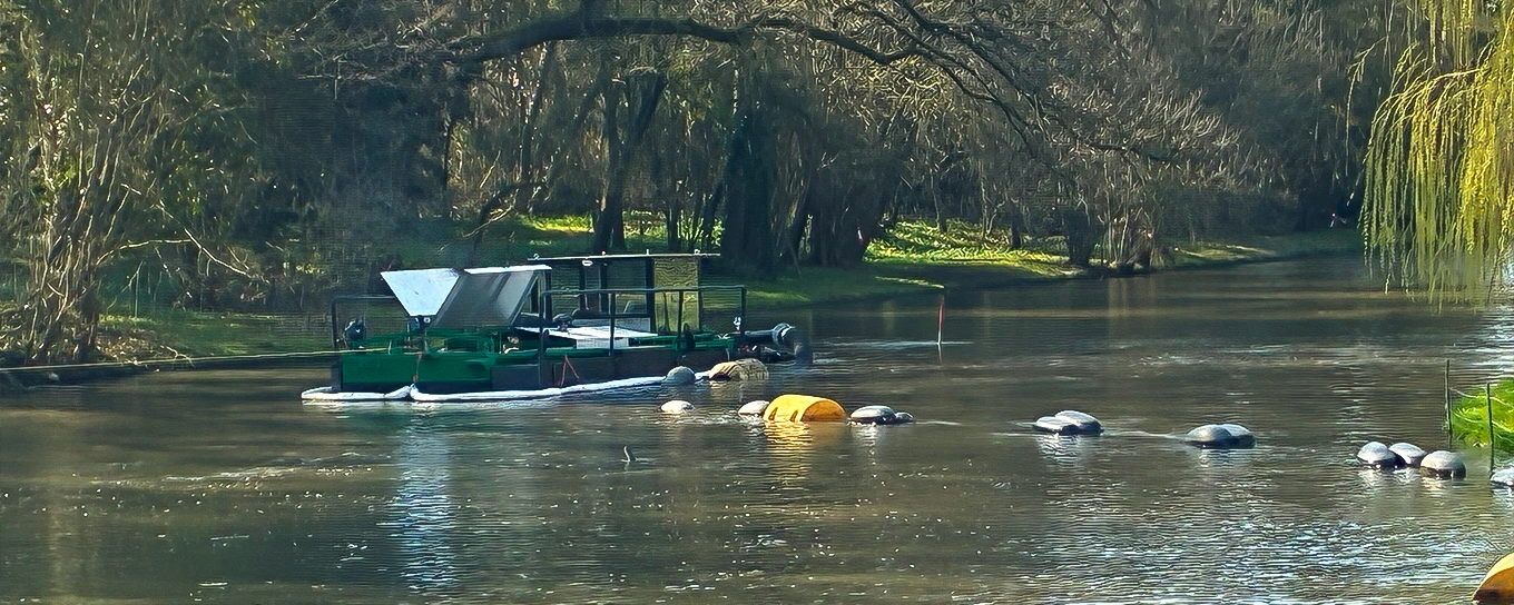 Zuletzt wurde das Gewässer an der Insel Siebenbergen im Staatspark Kassel in den 1980er-Jahren vom Schlamm befreit. Vier Jahrzehnte später haben sich bis zu 80 cm mächtige Schlammablagerungen gebildet, die eine umfassende Sanierung der Teichlandschaft notwendig machen. Mithilfe eines Schwimmbaggers wird der Schlamm vom Grund abgesaugt und anschließend über eine 400 m lange Rohrleitung einer mobilen Schlammaufbereitungsanlage im Park zugeführt. Insgesamt 5.000 Tonnen Material durchlaufen die Anlage im Zuge der Maßnahme. Bei der Aufbereitung werden grobe Bestandteile wie Äste und Sand abgetrennt und der Wassergehalt des Materials durch den Einsatz von Zentrifugen um 50 % reduziert. Das Wasser wird in das Bassin zurückgepumpt, für die Entsorgung des Schlamms zeichnet BAUREKA verantwortlich. Da eine früher übliche Verwertung des Materials in der Landwirtschaft aufgrund geänderter gesetzlicher Vorgaben nicht mehr zulässig ist, erfolgt die sichere Ablagerung auf einer Deponie für gering belastete mineralische Abfälle.
